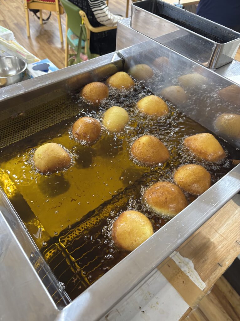 生地作りを手伝っていただいたおかげで、外はカリっと中はふわっとした、とっても美味しいドーナツが出来ました(* ´艸`)