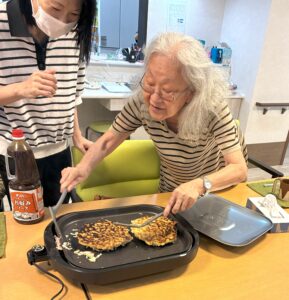 お好み焼きの生地は職員で作り、焼くのは利用者様にお願いしました!!